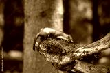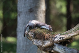 Stone marten, Martes foina, with clear green background. Beech marten, detail portrait of forest animal. Small predator sitting on the beautiful green moss stone in the forest. Wildlife scene, France