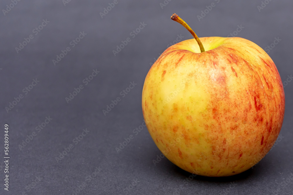 A red and yellow apple on a dark background, close-up. a place for your text, copy space.
