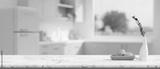 White marble kitchen tabletop with empty space over blurred beautiful pastel pink kitchen room