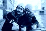 Loving Asian and Caucasian Same Sex Interracial Male Couple Hugging Smiling Outside Portrait