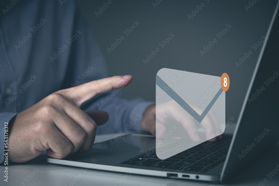 Email concept, businessman using laptop to sent or received email for newsletter, chatting, communication or online marketing.