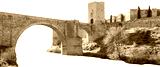 Isolated PNG cutout of a medieval bridge leading to a huge gate on a transparent background, ideal for photobashing, matte-painting, concept art