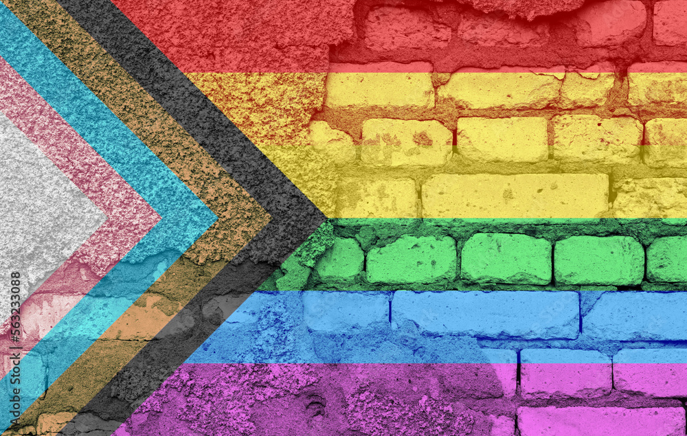The Progress Pride flag lgbtq Progress LGBTQ rainbow flag . Freedom and love concept. Pride month. activism, community and freedom Concept. Copy space