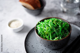 Green seaweed spicy salad Chukka with sesame seeds in a bowl