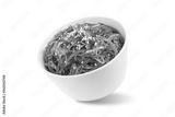 Green seaweed spicy salad Chukka with sesame seeds in a bowl on a white isolated background