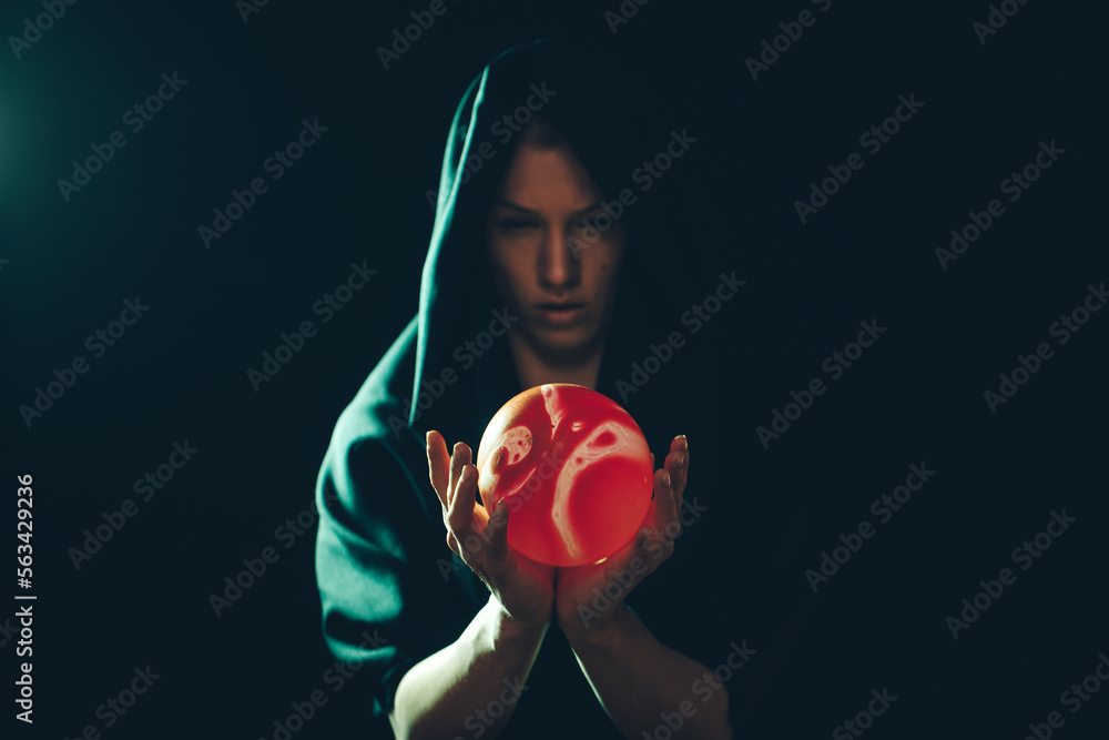 Magic. Woman hand with ball.