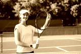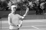 Pretty sportswoman with racquet at the tennis court. Healthy lifestyle.
