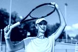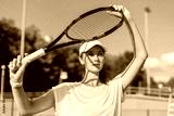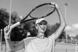 Pretty sportswoman with racquet at the tennis court. Healthy lifestyle.