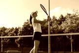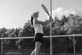 Female sportsman on tennis court. Sport recreation active lifestyle practicing in tennis court.