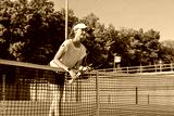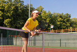 Pretty sportswoman with racquet at the tennis court. Healthy lifestyle.