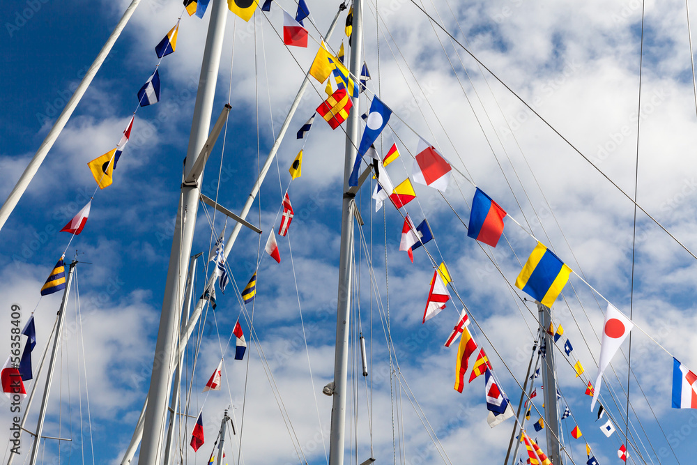 Colourful signal flags on a sailing boat