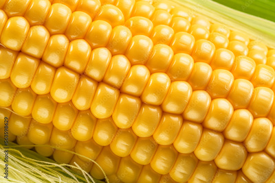 Maize cob or corn cob and corn silk close up. Macro shot.