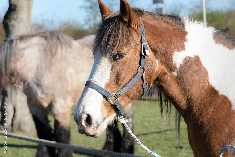 The pensive look of a horse. Horses at the fair