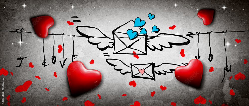 Happy Valentines day. Travel planning on Valentines Day. 3d illustration