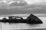Silhoutte of the SS Palo Alto, an old World War II shipwreck, around sunset off the coast of Aptos, Californa, near seacliff beach.
