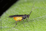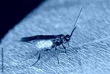 An adult colourful tiny of parasitoid wasp (chalcidoidea).