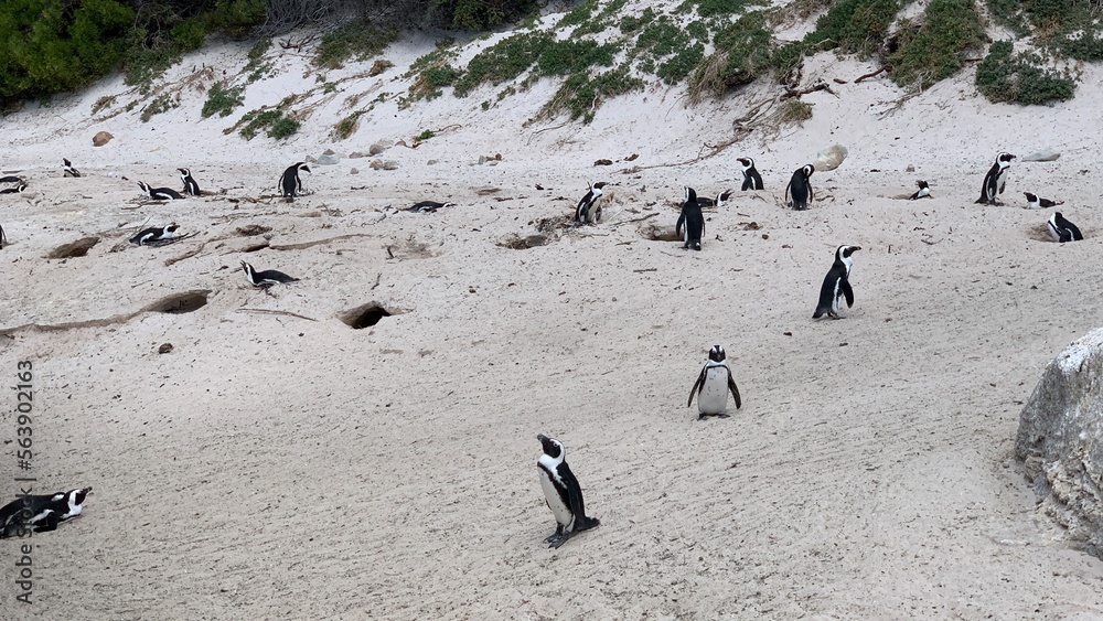 Group of penguins in boulders beach, Cape Town, South Africa