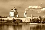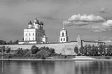 Pskov Kremlin (Krom) and the Trinity orthodox cathedral, Russia.
