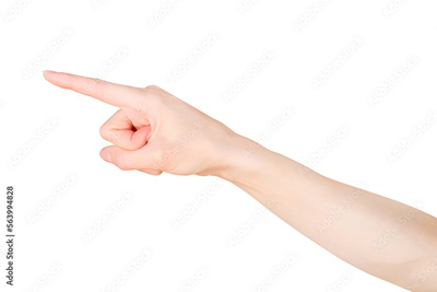 Pointing finger. Female hand pointing or touching something. Isolated png with transparency