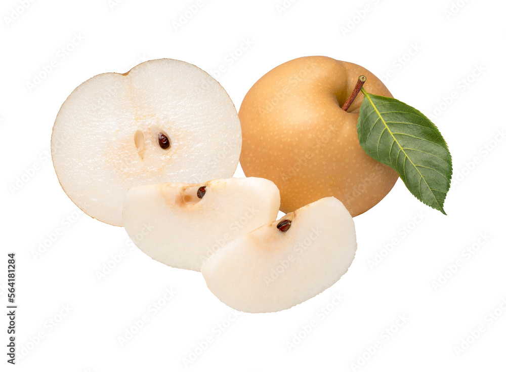 Premium Korean Sweet Pear on white background, Korean Snow pear or Shingo pear on white background PNG File.