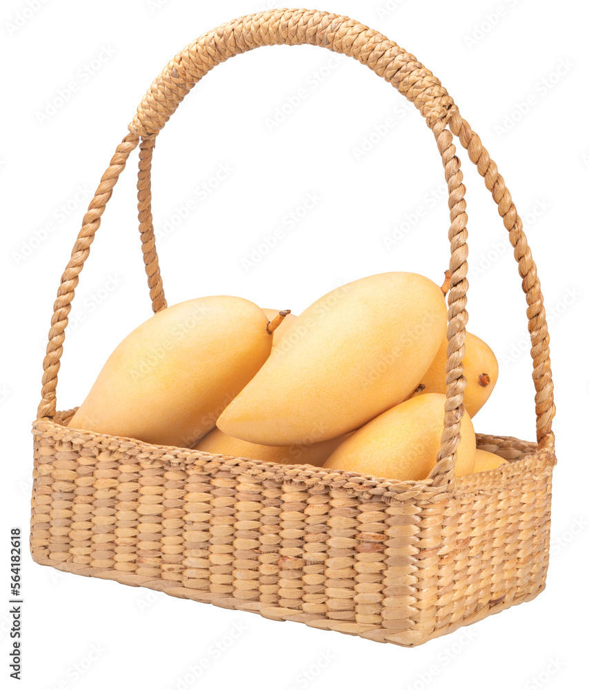 Yellow mango with leaves on white background, Golden mango on the white background PNG file.