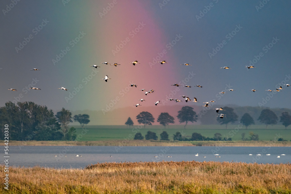 kraniche im regenbogen
