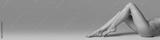 Cropped image of slim smooth female legs over grey background. Depilation, epilation, laser hair removal. Model in underwear. Concept of body care, fitness, wellness. Banner, flyer. Copy space for ad