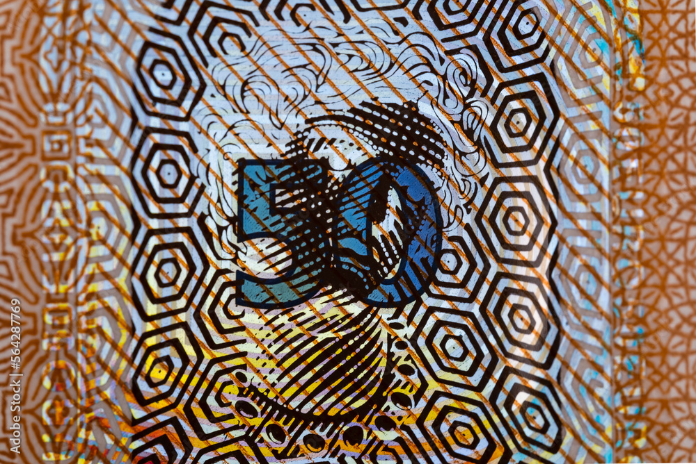 Macro photo of the sign on the 50 euro banknote.