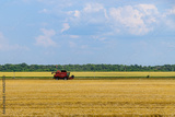 Combine harvester working at the wheat field. Agricultural concept