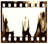 flatbed scan of single filmborder, empty film frame with chemical developing smear marks and dust.