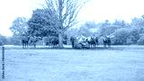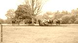Herd of Watusi resting and lying under the tree in the safari zo park. Watusi longhorn bull eating grass. Group of exotic cows.