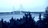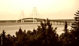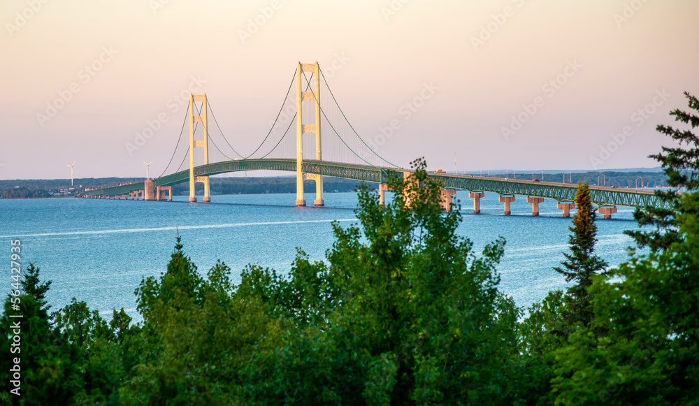 Mackinac Bridge at sunrise dawn eastside Lake Huron