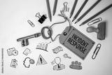 Incident Response. Key with price tag and drawn icons on white background
