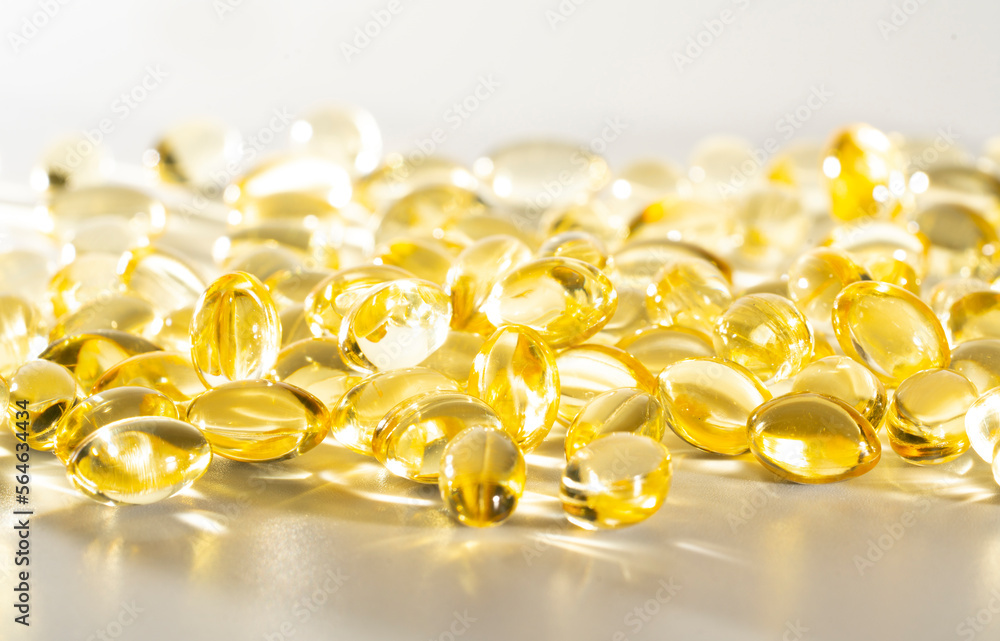 Food supplement oil filled fish oil, vitamin D, omega 3, omega 6, vitamin A, vitamin E, flaxseed oil.