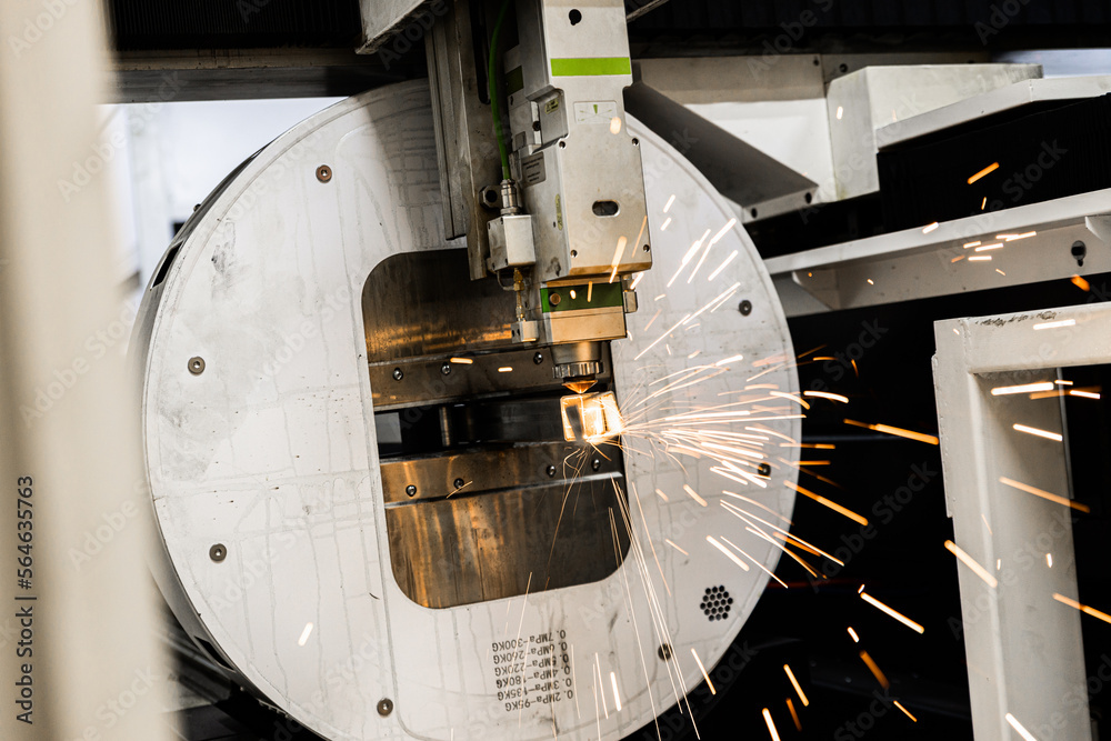 CNC Laser cutting metal square tube.