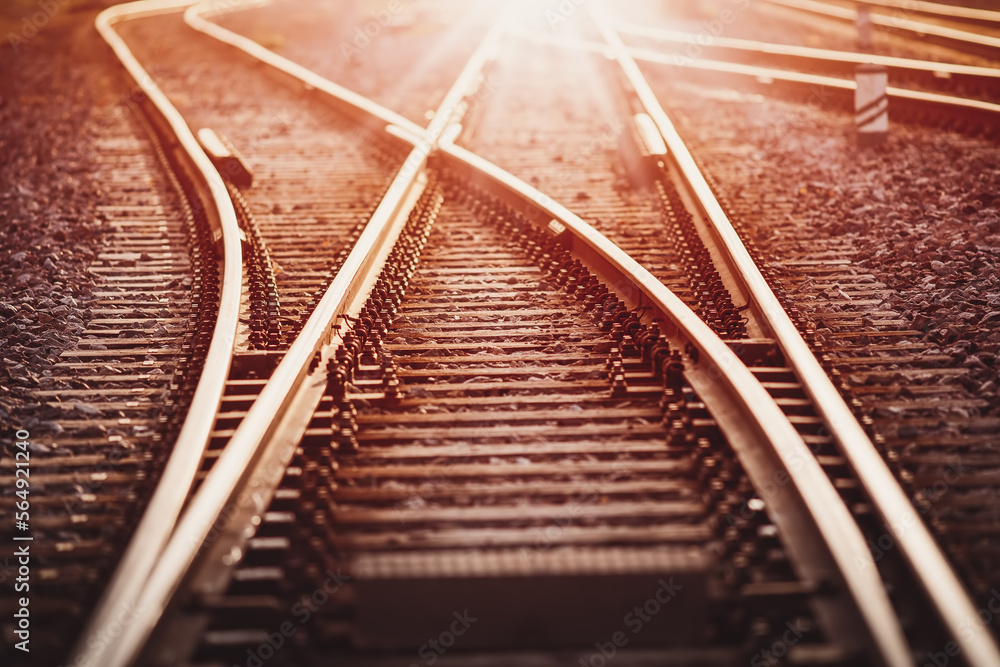 View of the crossing railway in sunset in summer.