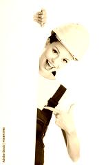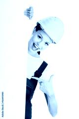 Female construction worker with blank board