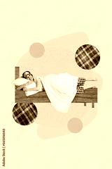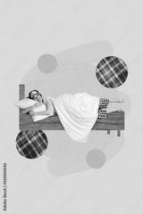 Photo creative picture 3d collage of sleepy lady girl enjoy free time cozy bed sunday morning relax rest isolated on painted background