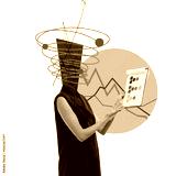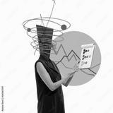 Business analytics, graph. Woman, employee making company growth presentation. Modern design, contemporary art collage. Inspiration, idea, trendy urban magazine style. Copy space for ad, text