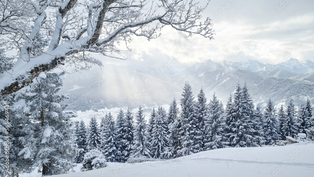 Winterlandschaft in den Ammergauer Alpen, Bayern, Deutschland