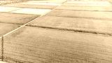 Aerial shot with drone in rice fields