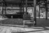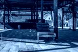 Old abandoned bar on the beach. Wooden interior. Old shabby walls. Sunny day. Sand on the beach. Forgotten beach bar.