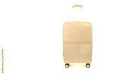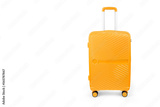 Suitcase isolated on white. Yellow , fashionable travel suitcase on white background with shadow. Orange travel luggage. Front view