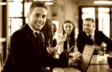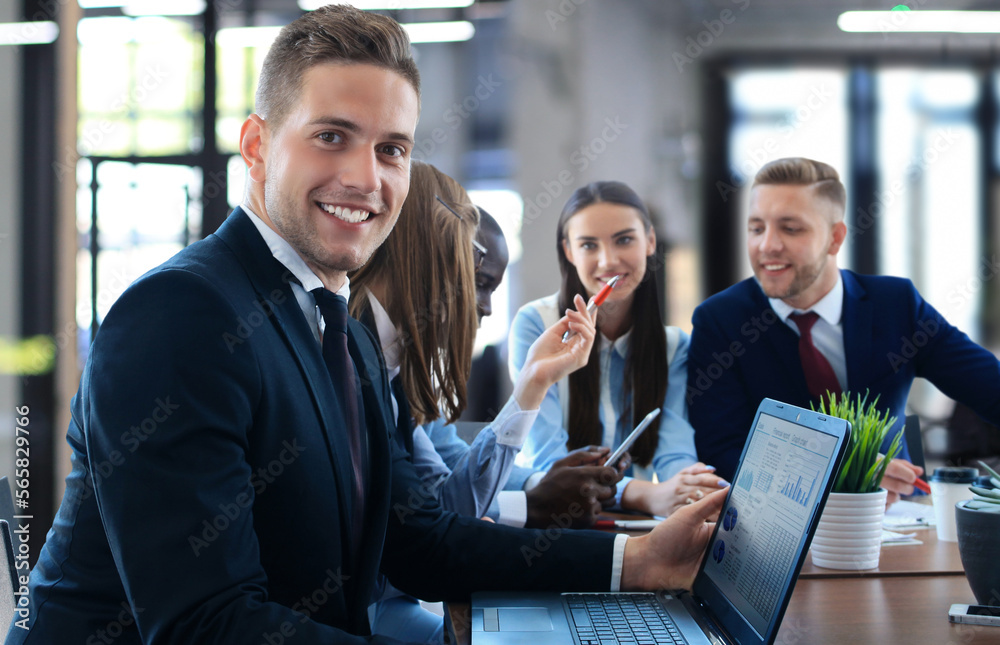 Businessman with colleagues in the background in office.