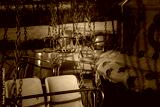 An old amusement ride in an abandoned amusement park. Abandoned carousel and cars. Sunny day. Old abandoned amusement park.