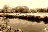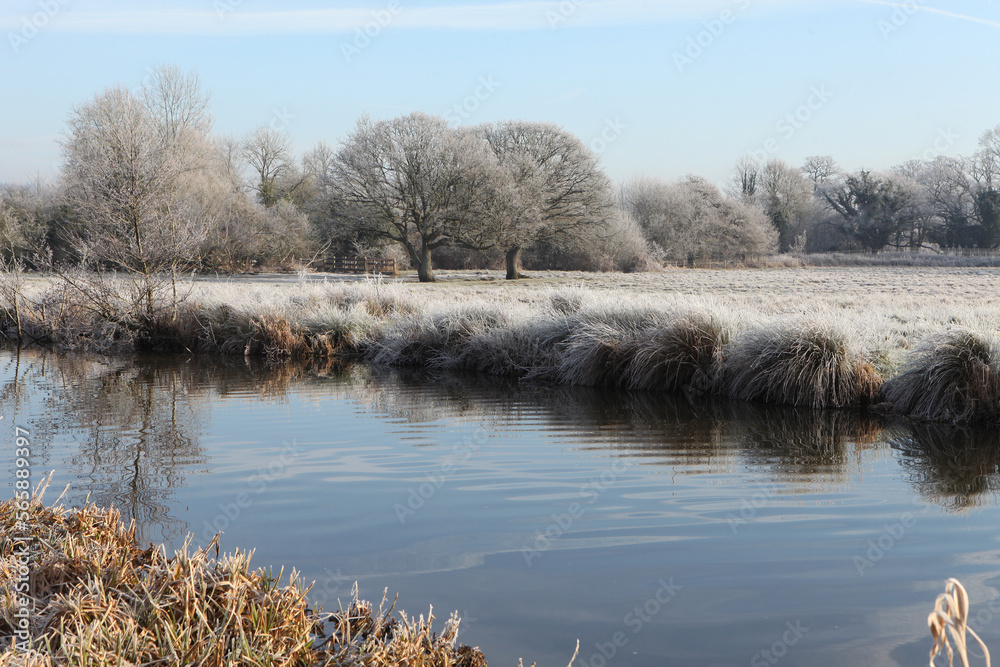 A still River Wey on a cold frosty morning, Surrey, UK.