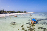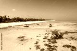 Aerial view of Kiwengwa beach in Zanzibar, Tanzania with luxury resort and turquoise ocean water. Toned image.