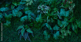 Group of dark green tropical leaves background, Nature Lush Foliage Leaf Texture, tropical leaf