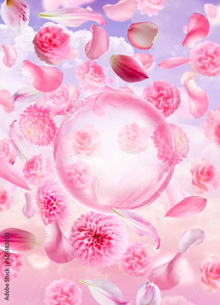 pink flowers and molecule on pink background