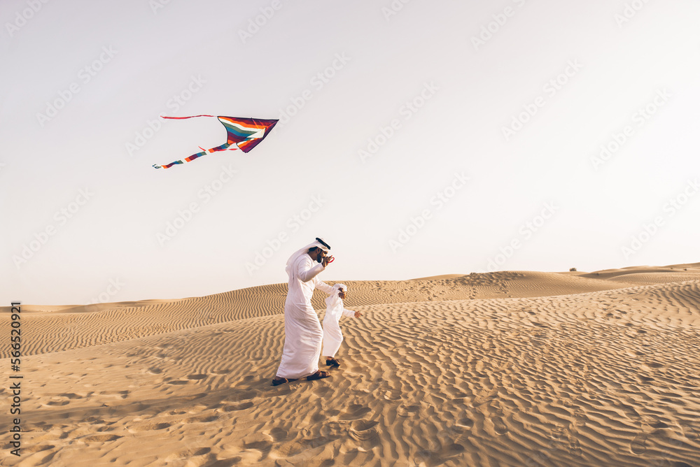 father and son spending time in the desert